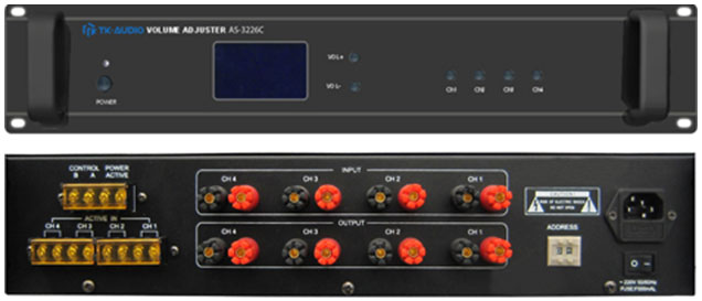 AS-3226C是一款用来调节广播播放音量的设备,功能相当于音控开关,它具有4路音量独立控制功能。