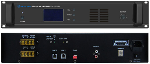 AS-3218I是一款实现电话广播功能的设备,简单的说就是将输入电话音转成普通的音频输出进行广播系统。当有电话接入时,可自动接通,根据提示语进行全区广播、分区寻呼广播和修改接入口令并将电话音输出给广播系统,还有可以设定电话接入的权限。