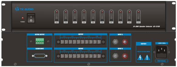 (1)       2路输入(AB),10通道输出,有强行插入功能切换通道功率音频信号