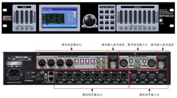 每输入通道设6个参量均衡:中心频率点:20Hz-20KHz、共239个频点 带宽:0.01oct-3oct、步距为0.01oct