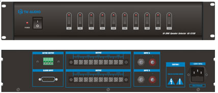 2路输入(A和B),10通道输出,有强行插入功能70V/100V音频信号