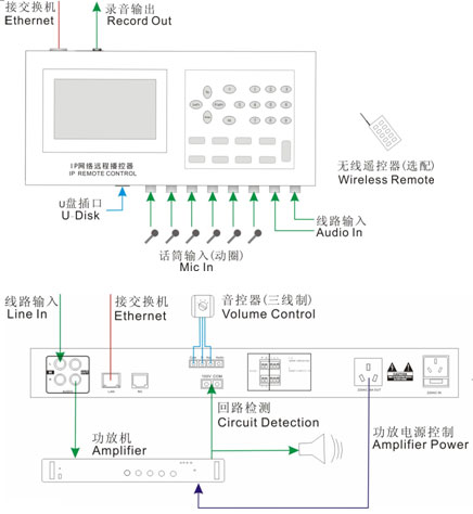 5. 可通过网络对其他IP音频终端进行分区或全区的远程播放,并可调节播音音量;