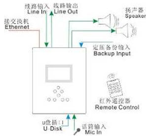 6.本地扩音(带线路输入和话筒输入),电脑可通过终端扩音输出,有三级优先:网络音频>本地话筒>本地线路输入