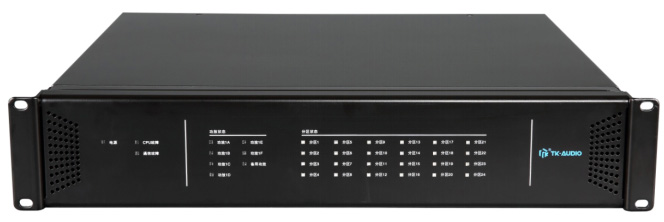 24分区扩展器是本系统的分区管理设备,用于扩展系统扬声器线路数量及相关接口,监控其所连接设备工作状态,并执行主控制单元的操作指令。24分区扩展器可以扩展24个扬声器线路和24个干接点输入接口,可连接外置功率放大器来驱动所有连接的扬声器,并支持功率放大器备份功能。